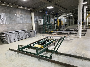 Толкатель электромеханический имеет жесткий каркас из швеллера 8П, конструкция крепится анкерами к бетонному полу. Имеется тележка, которая выполняет толкающую функцию. Перемещение тележки происходит при помощи червячного мотор- редуктора. Толкатель облегчает процесс работы на газобетонном заводе, перемещает конвейерные основания с массивами газобетона. Толкатель имеет функцию забора конвейерного основания с передаточной тележки. Тележка толкателя имеет ход вперед и назад. При включении толкатель захватывает конвейерное основание проталкивает на определенное расстояние, после нажатия концевого выключателя, включается обратный реверс и толкающая тележка возвращается в исходное положение.