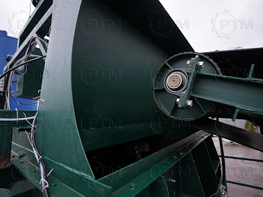 Ленточный конвейер имеет рамную конструкцию с фермами. В нижней и верхней части ленточного конвейера устанавливаются барабаны с футеровкой, ведущий барабан приводится в движение при помощи червячного мотор-редуктора. Конвейерная лента шевронная закрытого типа. В нижней части конвейера имеется приемный бункер, конвейер имеет от бортовку, это необходимо чтобы инертные материалы не просыпались с ленточного конвейера при транспортировки инертных материалов в бетоносмеситель. Все конвейерные ролики оцинкованные.