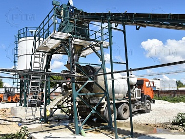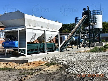 Данный завод производительность от 15 до 18 м3/час товарного бетона марки м200 или раствора. Объём загрузки бетоносмесителя 375 литров, объем выгрузки готового бетона 250 литров. Один цикл не более 55 секунд. Время работы цикла регулируется оператором бетонного завода.