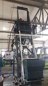 Данный завод состоит из жесткой рамной конструкции, двухвального бетоносмесителя на 750 литров по загрузке, скипового бака с весовой площадкой и лебедки для подъема инертных материалов.