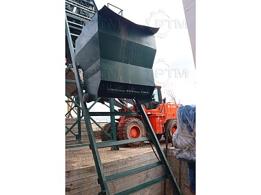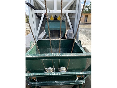 2. После набора нужного количества материалов инертные попадают в скиповый бак, далее скиповый бак поднимается и высыпает материалы в бетоносмеситель.