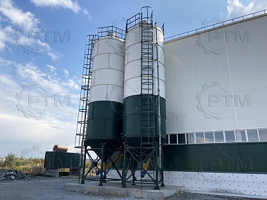 Силос цемента предназначен для хранения цемента на площадке. Силос принимает цемент по трубе закачки от цементовоза, сохраняет его от внешних воздействий. Далее цемент подается при помощи шнекового конвейера на блок дозаторов. На блоке дозаторов взвешивается и попадает в производственный цикл бетона на бетонном заводе.
