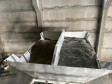 1. Дозирующий комплекс СТЭ-10 (2 секции по 5 м3): состоит из двух до четырех бункеров для хранения инертных материалов (щебень, песок, отсев). На каждом бункере имеется два пневмо- затвора, необходимых для точной дозации материалов. При дозировании материалы попадают на весовой ленточный конвейер, весовые датчики фирмы CAS Ю.Корея, при наборе нужного количества материалов, заслонки закрываются, подача прекращается. Объем каждого бункера от 2,5 м3 до 20 м3, в зависимости от комплектации завода. Каждый бункер оснащен вибродвигателем MVE 300/3.