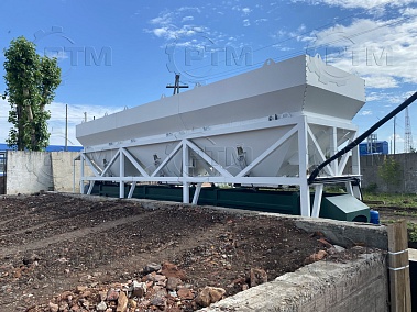 1. Дозирующий комплекс СТ-40 (2 секции по 20 м3): состоит из двух до четырех бункеров для хранения инертных материалов (щебень, песок, отсев). На каждом бункере имеется два пневмо- затвора, необходимых для точной дозации материалов. При дозировании материалы попадают на весовой ленточный конвейер, весовые датчики фирмы CAS Ю.Корея, при наборе нужного количества материалов, заслонки закрываются, подача прекращается. Объем каждого бункера от 2,5 м3 до 20 м3, в зависимости от комплектации завода. Каждый бункер оснащен вибродвигателем MVE 300/3.